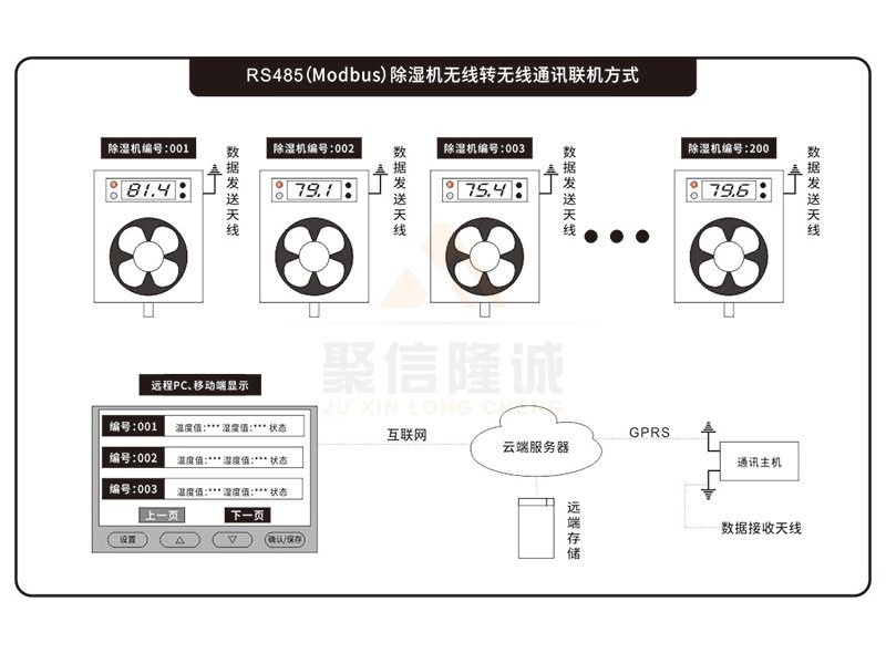 智能無(wú)線溫濕度集中監(jiān)控系統(tǒng)由智能無(wú)線溫濕度集中監(jiān)控主機(jī)、智能無(wú)線溫濕度集中監(jiān)控子機(jī)和監(jiān)控軟件構(gòu)成。每臺(tái)智能無(wú)線溫濕度集中監(jiān)控主機(jī)可與最多200臺(tái)智能無(wú)線溫濕度集中監(jiān)控子機(jī)組網(wǎng)。智能無(wú)線溫濕度集中監(jiān)控主機(jī)通過(guò)RS232接口與電腦連接或通過(guò)SIM模塊,可接入監(jiān)控計(jì)算機(jī)或可通過(guò)無(wú)線通訊信號(hào)把數(shù)據(jù)發(fā)送到上一級(jí)的運(yùn)管中心。