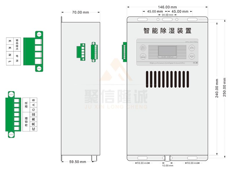 10、型號帶“T”的具有加熱功能,當檢測到箱體環(huán)境溫度低時,除濕裝置內(nèi)部的風機和外部加熱器啟動工作。