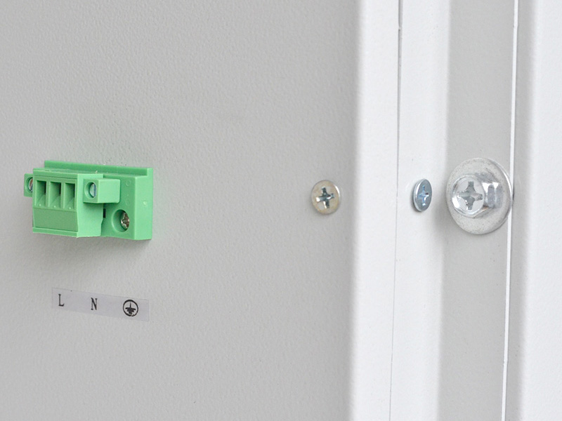 空調(diào)器內(nèi)循環(huán)的風(fēng)扇從上部吸入熱空氣,使空氣不斷通過(guò)蒸發(fā)器的翅片進(jìn)行熱交換,并將放熱后變冷的空氣從下部排出空調(diào)器,并送向柜內(nèi)。如此柜內(nèi)空氣不斷循環(huán)流動(dòng),達(dá)到降低溫度的目的。同時(shí),外部循環(huán)的風(fēng)扇從下部吸入外界冷空氣,經(jīng)過(guò)熱交換后熱空氣從上部排出空調(diào)器。